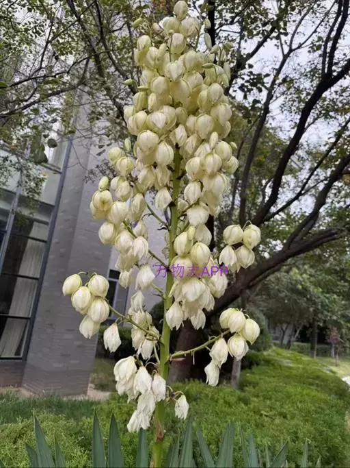丝兰是天门冬科丝兰属植物。茎短或无茎;圆锥花序烛台状,花朵杯形,下垂,白色;叶基部呈剑形放射状,…