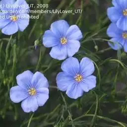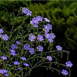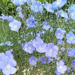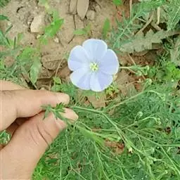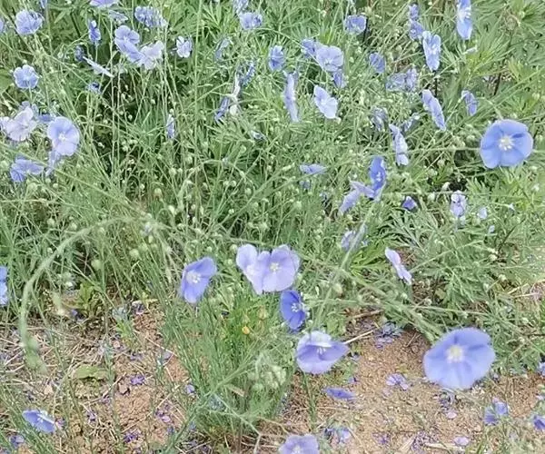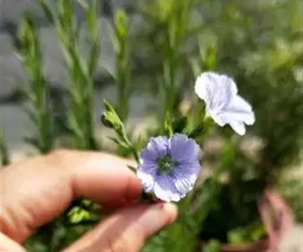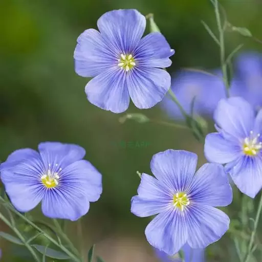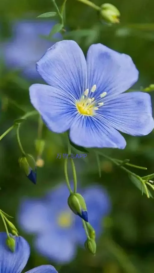 亚麻(学名:Linum usitatissimum L. ):是一年生草本植物,可分成纤维用亚麻、油用亚麻和油纤兼用亚麻三种类型。茎直立,可达1.2米高,上部细软,有蜡质;叶互生,披针状,20-40毫米长,3毫米宽,表面有白霜;花的花瓣5,直径为15-25毫米,蓝色或白色;果实为蒴果,种子扁卵圆形,喜凉爽湿润气候。