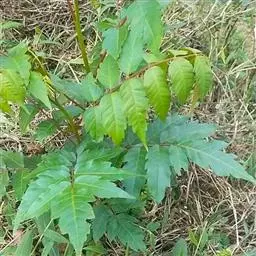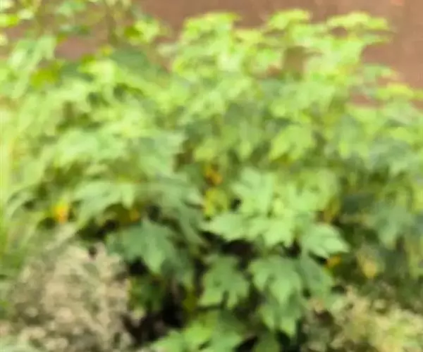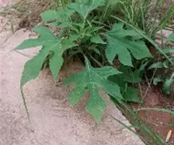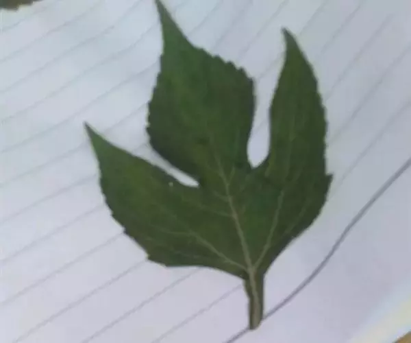 叶卵形或卵状三角形或近圆形,长7-20厘米,3-5深裂,有长叶柄,上部的叶有时不分裂,裂片卵形或披针形,边缘有细锯齿,下面被尖状短柔毛,沿脉的毛较密,基出三脉。