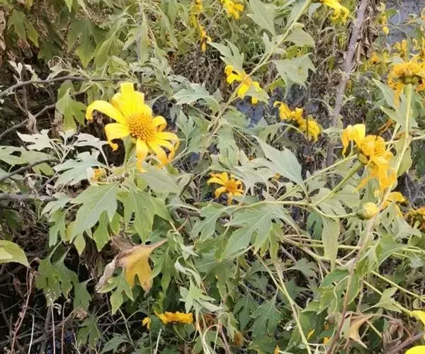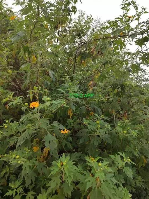 肿柄菊(学名:Tithonia diversifolia A. Gray)菊科肿柄菊属植物,一年生草本,高2-5米。叶卵形或卵状三角形或近圆形,头状花序大,顶生于假轴分枝的长花序梗上,总苞片4层,外层椭圆形或椭圆状披针形,花果期9-11月。