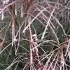 圆锥花序大型,稠密,长30-50厘米,主轴粗壮,延伸达花序的2/3以上,无毛;分枝较细弱,长15-20厘米,通常10多枚簇生于基部各节,具2-3回小枝,腋间生柔毛;总状花序轴的节间长3-5毫米,无毛,小穗柄无毛,顶端稍膨大,短柄长1-1.5毫米,长柄向外弯曲,长2.5-3毫米;小穗卵状披针形,长3-3.5毫米,黄色,基盘具较长于小穗的丝状柔毛;第一颖无毛,顶端渐尖或有2微齿,侧脉内折呈2脊,脊间中脉不明显,上部及边缘粗糙;第二颖等长于第一颖,顶端渐尖,具3脉,中脉呈脊,粗糙,边缘具短纤毛,第一外稃长圆状披针形,稍短于颖,顶端钝圆,边缘具纤毛;第二外稃卵状披针形,长约2.5毫米,顶端尖或具2微齿,无毛或下部边缘具少数短纤毛,芒长7-10毫米,微粗糙,伸直或下部稍扭曲;内稃微小。