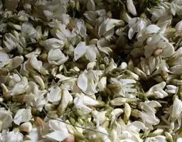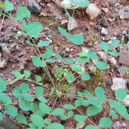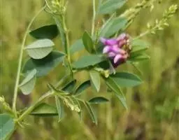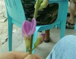 总状花序单生于叶腋,长于复叶;花序轴被黄色微柔毛,花3-10朵聚生,花束的总轴延伸成一有节、长2-4毫米的小枝;花长10-12毫米;花梗丝状,长4-5毫米,紧贴黄色柔毛,顶端有被黄色柔毛的小苞片2枚;花萼杯状,长宽各3-4毫米,外面密被黄色柔毛,萼齿小,不等大;花冠红白色,旗瓣椭圆状卵形,先端2浅裂,基部截状微心形,沿背脉上疏被微柔毛或无毛,翼瓣和龙骨瓣一侧有稍钝的耳;雄蕊单体,不等长;花盘杯状,浅裂;子房被长柔毛,有胚珠多粒。