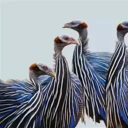 鹫珠鸡:是珠鸡科中体形最大的一种,因头颈部像兀鹫而得名。雌雄羽色相似,为黑色基底上遍布白色点斑,…
