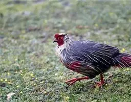黑长尾雉大型鸡类,体长53~88厘米。雄较雌大。雄鸟通体紫蓝色,脸鲜红色,翅上有一条显著的白色翅斑…