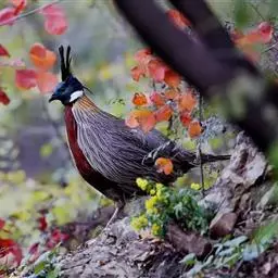 红腹角雉属于鸡形目雉科,雄鸟体羽及两翅主要为深栗红色,满布具黑缘的灰色眼状斑,下体灰斑大而色浅。雌…