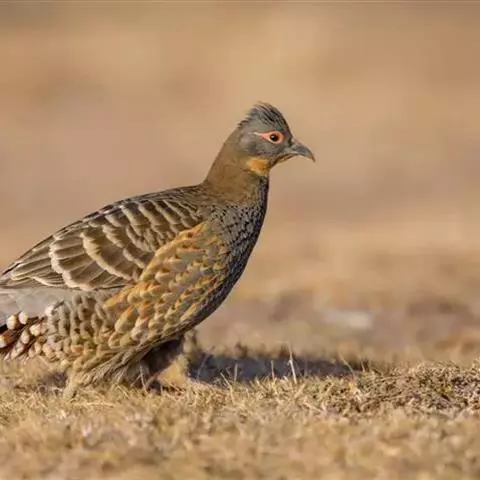 斑翅山鹑,俗称沙半鸡、沙斑鸡,体长250-310毫米,是体形略小的灰褐色鹑类。…
