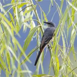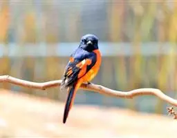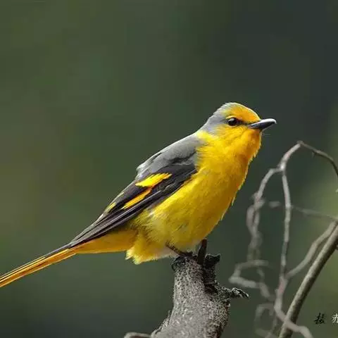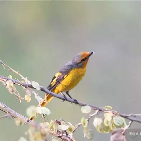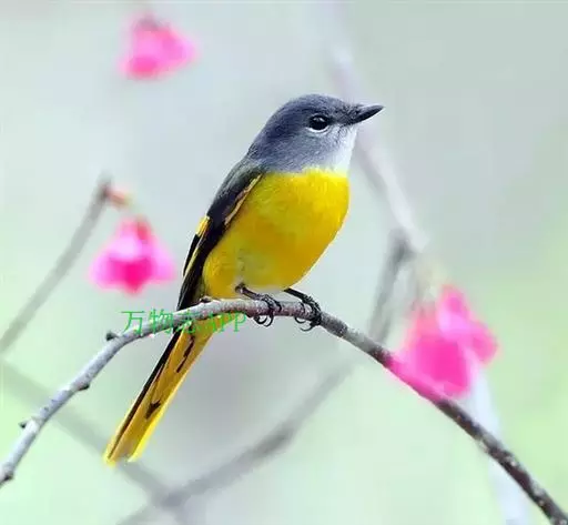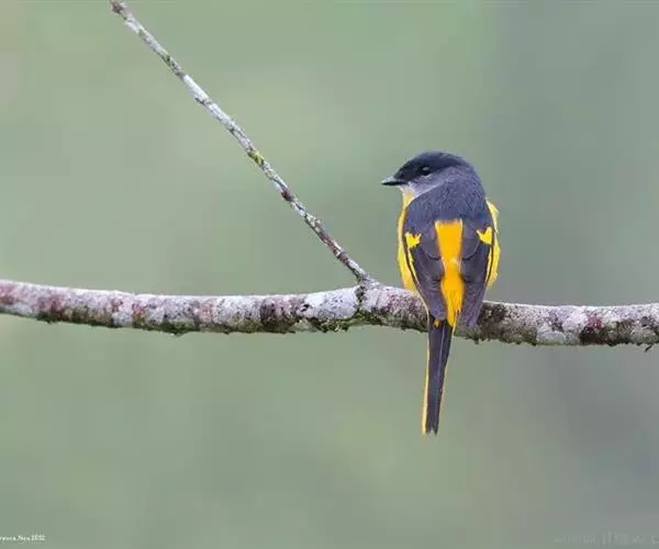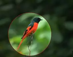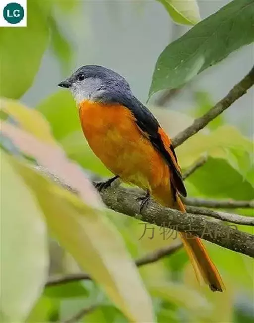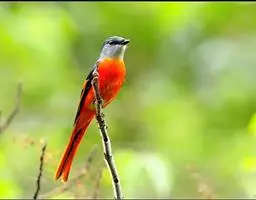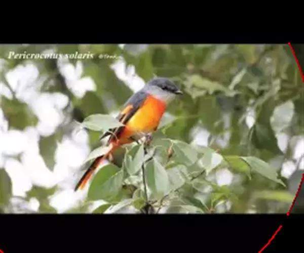 灰喉山椒鸟(学名:Pericrocotus solaris):共有8个亚种。体长18-22厘米。雄鸟头部和背亮黑色,腰、尾上覆羽和下体朱红色,翅黑色具一大一小的两道朱红色翼斑。中央尾羽黑色,外侧尾羽基部黑色,端部红色。雌鸟额、头顶前部、颊、耳羽和整个下体均为黄色,腰和尾上覆羽亦为黄色。翅和尾颜色与雄鸟大致相似,但其上的红色由黄色取代。