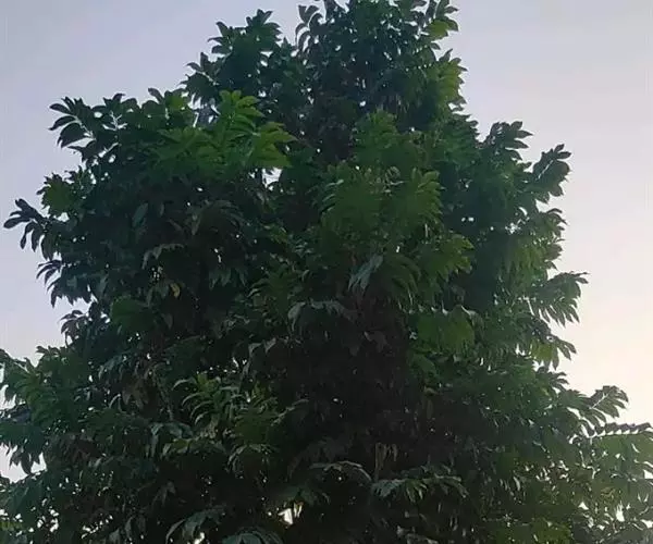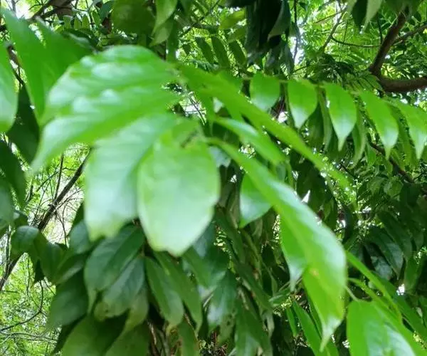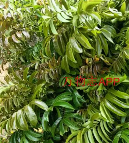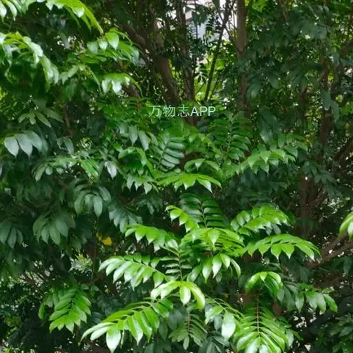 常绿大乔木,高达20余米;幼枝具条纹,被灰色绒毛。奇数羽状复叶长30-45厘米,有小叶5-7对,叶轴和叶柄具条纹,疏披毛;小叶互生,近革质,长圆形,自下而上逐渐增大,长5-14.5厘米,宽2.5-4.5厘米, 先端渐尖,基部常偏斜,阔楔形至近圆形,全缘,两面沿中脉疏被微柔毛,叶背脉腋具灰白色髯毛,侧脉8-9对,近边缘处弧形上升,侧脉和细脉两面突起;小叶柄短,长2-5毫米。
