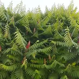 火炬树是漆树科盐麸木属落叶灌木或小乔木;株高,树形不整齐;小枝粗壮,红褐色,密生绒毛;叶轴无翅,…