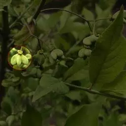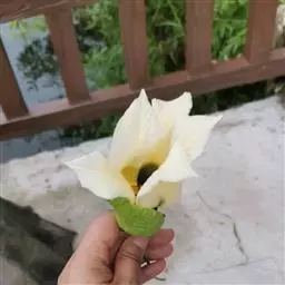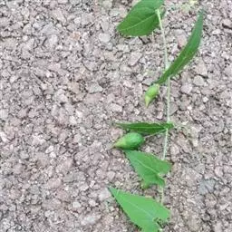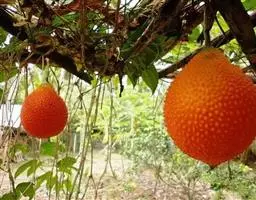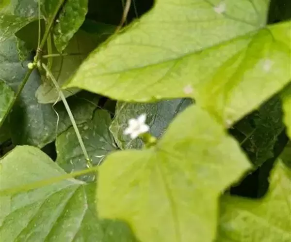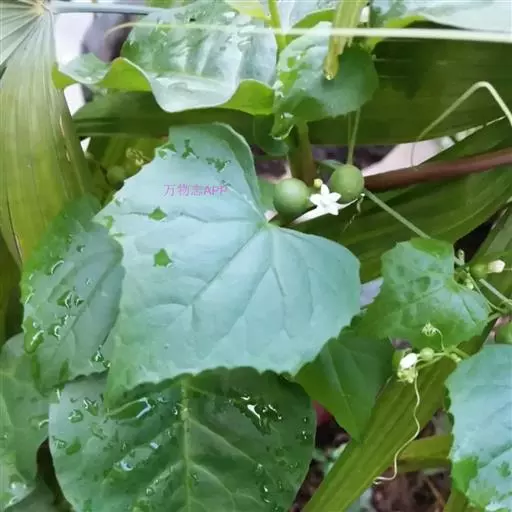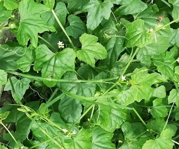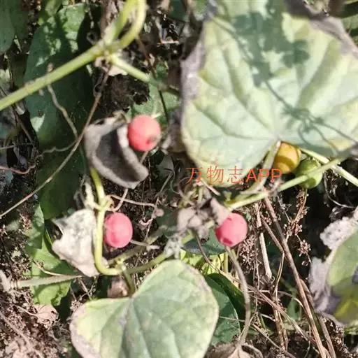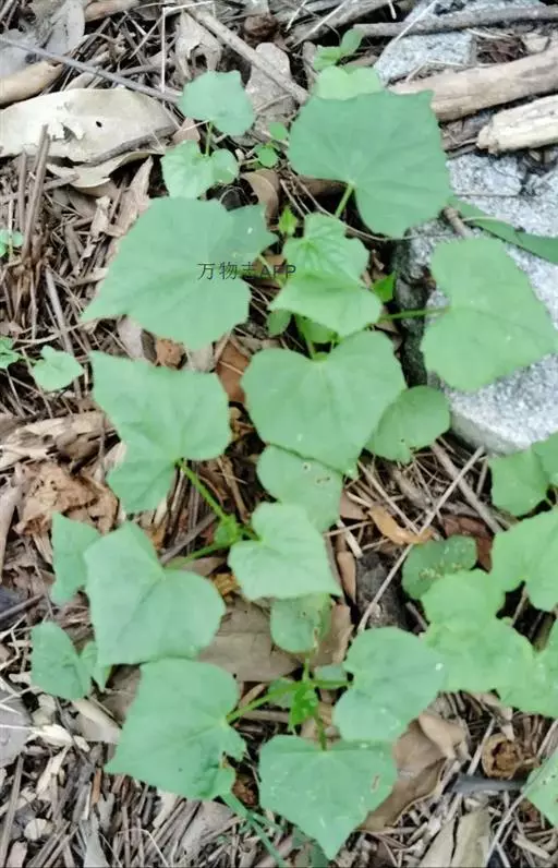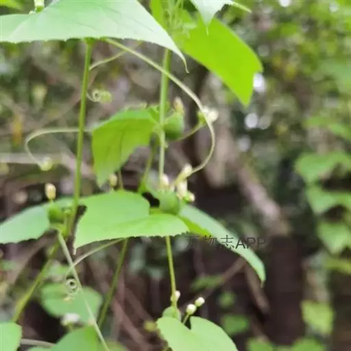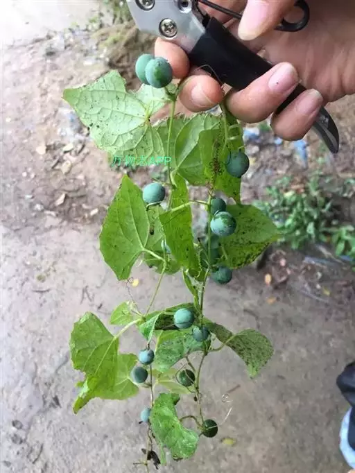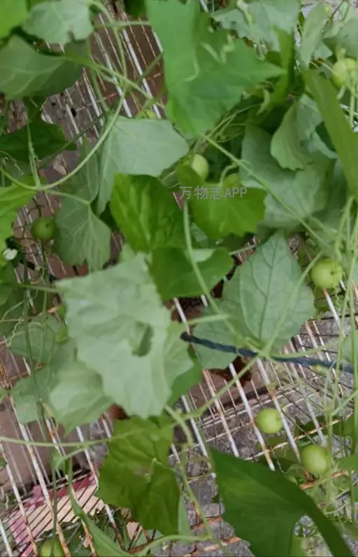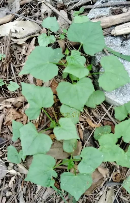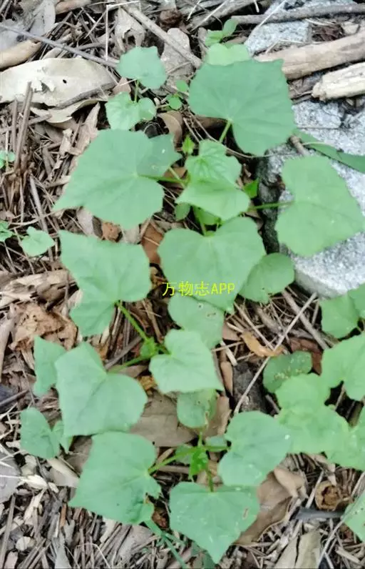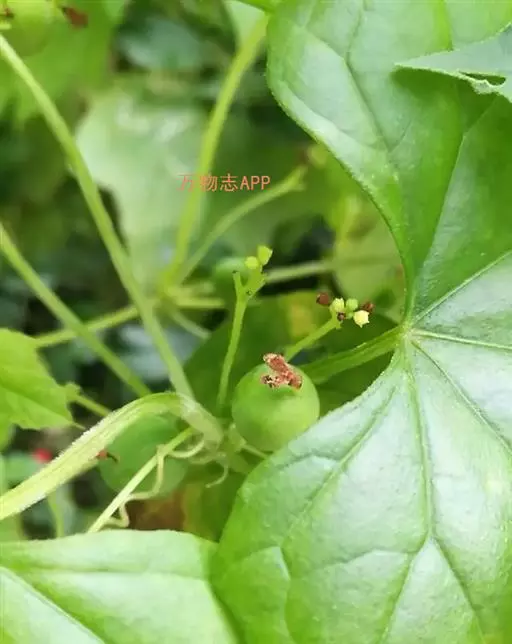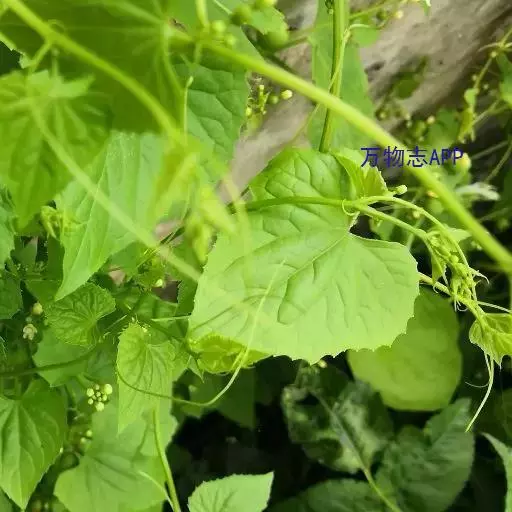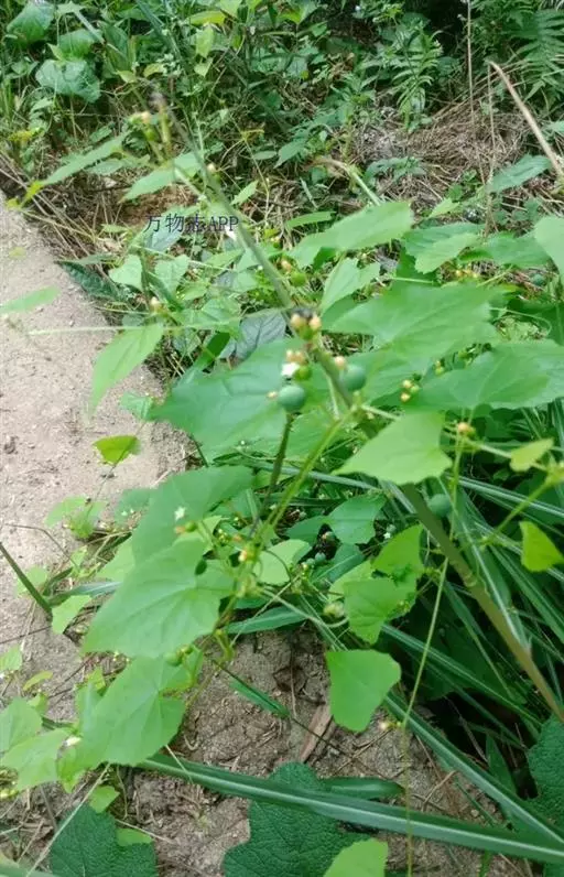 钮子瓜,又名野杜瓜。草质藤本。茎、枝细弱,伸长,有沟纹,多分枝。叶柄细,长2-5cm,无毛;叶片膜质,宽卵形和稀三角状卵形,长、宽均为1-10cm,上面深绿色,粗糙,被短糙毛,背面苍绿色,近无毛,先端急尖或短渐尖,基部弯缺半圆形,边缘有细锯齿或深波状锯齿,不分裂或有时3-5浅裂,脉掌状。卷须丝状,单一,无毛。花雌雄同株;雄花3-9朵生于总梗顶端,呈近头状或伞房状花序,花序梗纤细,长1-4cm,无毛;雄花梗开展,极短,长1-2mm;花萼筒宽钟状,长2mm,宽1-2mm,无毛或被微柔毛,裂片狭三角形,长0.5m;花冠白色,裂片卵形,或卵状长圆形,长2-2.5mm,上部常被柔毛;雄蕊3,2枚2室,1枚1室,有时全部为2室,插生在花萼筒基部,花丝长2mm,被短柔毛;雌花单生,稀几朵着生在总梗顶端或极稀雌雄同序;子房卵形。果梗细,无毛,长0.5-1cm,果实球状或卵形,直径1-1.4cm,浆果状,外面光滑无毛。种子卵状长圆形,扁压,平滑,边缘稍拱起。花期4-8月,果期8-11月。