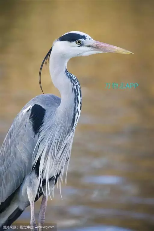 苍鹭雄鸟头顶中央和颈白色,头顶两侧和枕部黑色。羽冠为4根细长的羽毛形成,分为两条位于头顶和枕部两侧,状若辫子,颜色为黑色,前颈中部有2-3列纵行黑斑。上体自背至尾上覆羽苍灰色,尾羽暗灰色,两肩有长尖而下垂的苍灰色羽毛,羽端分散,呈白色或近白色。初级飞羽、初级覆羽,外侧次级飞羽黑灰色,内侧次级飞羽灰色,大覆羽外侧浅灰色,内侧灰色;中覆羽、小覆羽浅灰色,三级飞羽暗灰色,亦具长尖而下垂的羽毛。颏、喉白色,颈的基部有呈披针形的灰白色长羽披散在胸前。胸、腹白色;前胸两侧各有一块大的紫黑色斑,沿胸、腹两侧向后延伸,在肛周处汇合。两胁微缀苍灰色。腋羽及翼下覆羽灰色,腿部羽毛白色。