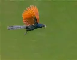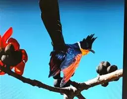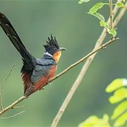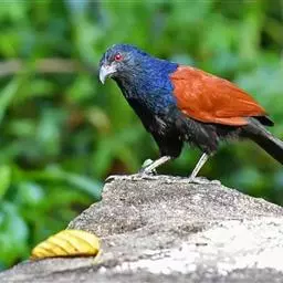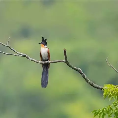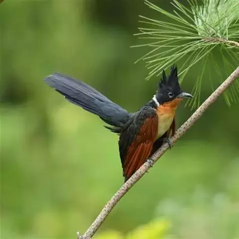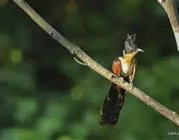 红翅凤头鹃:体长约38厘米,顶冠及凤头黑色,具显眼的直立凤头,背及尾黑色而带蓝色光泽,翅栗红色,…