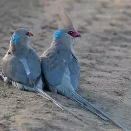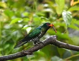 绿嘴地鹃:体形似小鸦鹃,但羽色大致绿灰;嘴绿色,头侧眼的周围有一裸区;后爪弯曲。虹膜赤红色,…
