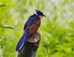 小鸦鹃,是杜鹃科、鸦鹃属的中型鸟类,体长30-40厘米,外形似褐翅鸦鹃,通体黑色,肩和翅栗色,…