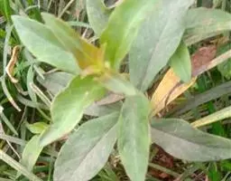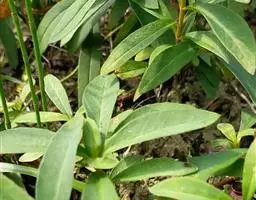 叶对生,有时在茎端互生,近基部的2-3对较小,卵圆形或退化成鳞片状,上部叶卵状披针形至披针形,长4-8厘米,宽1-4厘米,先端渐尖,基部圆形,无柄或近于无柄,上面幼时疏被小刚毛,老时近于无毛,仅下面沿叶脉被毛,两面均有红色或黑色粒状腺点,侧脉3-4对,网脉纤细,不明显。