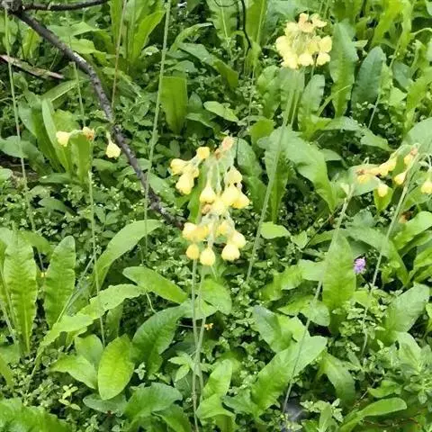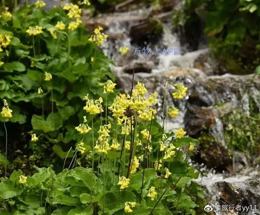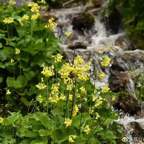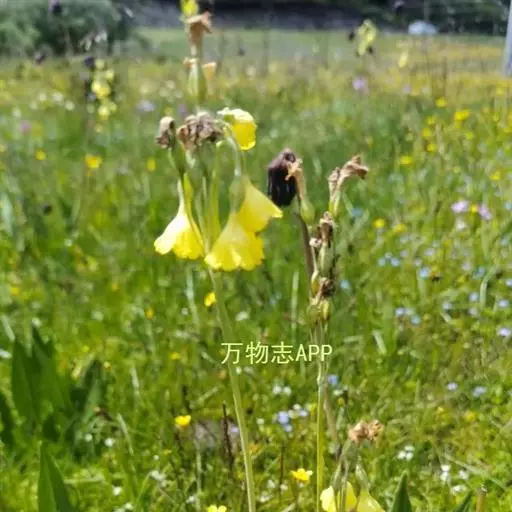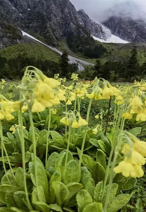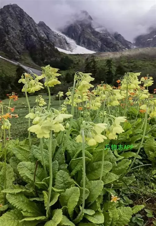 钟花报春(学名:Primula sikkimensis Hook. f.):报春花科、报春花属多年生草本植物。根状茎粗短,多数纤维状须根。叶片椭圆形至矩圆形或倒披针形,先端圆形或有时稍锐尖,上面深绿色,下面淡绿色,中肋宽扁,网脉极纤细;叶柄甚短。花葶稍粗壮,顶端被黄粉;伞形花序,多花,苞片披针形或线状披针形,花萼钟状或狭钟状,裂片披针形或三角状披针形,花冠黄色,乳白色,蒴果长圆体状,6月开花,9-10月结果。