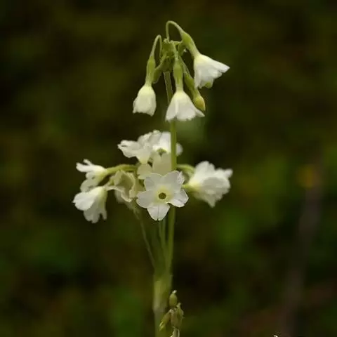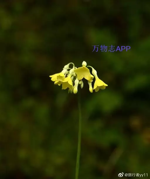 花葶稍粗壮,高15-90厘米,顶端被黄粉;伞形花序通常1轮,2至多花,有时亦出现第2轮花序;苞片披针形或线状披针形,长0.5-2厘米,先端渐尖,基部常稍膨大,多少被粉;花便长1-6(10)厘米,被黄粉,开花时下弯,果时直立;花萼钟状或狭钟状,长7-10(12)毫米,具明显的5脉,内外两面均被黄粉,分裂约达中部,裂片披针形或三角状披针形,先端锐尖,微向外反卷;花冠黄色,稀为乳白色,干后常变为绿色,长1.5-2.5(3)厘米,筒部稍长于花萼,喉部无环状附属物,筒口周围被黄粉,冠檐直径(1)1.5-3厘米,裂片倒卵形或倒卵状矩圆形,全缘或先端具凹缺;长花柱花:雄蕊距冠筒基部2-3毫米着生,花柱长达冠筒口;短花柱花:雄蕊近冠筒口着生,花柱长约2毫米。