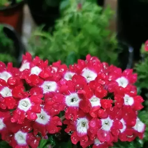 茎基部稍木质化,甸甸生长, 节部生根。株高20一3 0厘米, 枝条细长四棱, 微生毛。叶对生, 二回羽状深裂,裂片线性, 两面疏生短硬毛, 端尖, 全缘, 叶有短柄。穗状花序顶生,开花呈碎状花序顶生短缩呈伞房状,多数小花密集排列其上,花冠筒状,花色丰富,有白、粉红、玫瑰红、大红、紫、蓝等色,花期4-10月,经久不败。