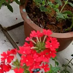 开花呈碎状花序顶生短缩呈伞房状,多数小花密集排列其上,花冠筒状,花色丰富,有白、粉红、玫瑰红、大红、紫、蓝等色,花期4~10月。细叶美女樱病虫害少, 很适合植于花坛、花径、房前、路边作观花草坪, 是一种值得在长江流域大力推广的观花地被植物,尤其适用于观花草坪。