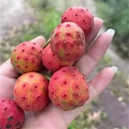 落叶灌木或小乔木,高5-7米;树皮平滑,灰色或深灰色;小枝纤细,近圆柱形,常稍弯曲,略呈“之”字形,当年生枝淡黄褐色或灰色,近无毛;冬芽圆锥状卵圆形,鳞片三角状卵形,覆瓦状排列,外面有灰色短柔毛。叶纸质,近圆形,稀阔卵形或倒卵形,顶端钝尖,基部近于心脏形或圆形,长11-13(-18)厘米,宽8-11 (-18) 米,不分裂或稀分裂,分裂者裂片钝尖或锐尖至尾状锐尖,深仅达叶片长度1/3-1/4,稀1/2,边缘呈波状或钝锯齿状,上面深绿色,下面淡绿色,两面除沿叶脉或脉腋幼时有长柔毛或疏柔毛外,其余部分近无毛;主脉3-5条,由基部生出,常呈掌状,侧脉5-7对,和主脉相交成锐角,均在叶上面显著,下面微凸起,小叶脉仅在下面显著;叶柄长3.5-5(-10)厘米,圆柱形,稀上面稍扁平或略呈沟状,基部粗壮,向顶端逐渐细弱,有稀疏的短柔毛或无毛。聚伞花序生叶腋,长3-3.5厘米,通常有3-5花,总花梗长1.2-2厘米,花梗长1.5-2厘米,几无毛,花梗上有线形小苞片1枚,长5毫米,早落,外面有短柔毛;花篠近钟形,外面具稀疏短柔毛,裂片5,三角形,长和宽均约1毫米,花瓣6-7,线形,紫红色,外面有短柔毛,近基部较密,长2.5-3.5厘米,宽1-2毫米,基部粘合,上部开花时反卷;雄蕊6-7,较花瓣短,花丝略扁,长8-14毫米,微有短柔毛,花药长1.5-2.1厘米,药隔内面无毛,外面无毛或有疏柔毛;花盘肥厚,近球形,无毛,微现裂痕;子房1室,花柱粗壮,长2.6-3.6厘米,无毛,柱头扁平。核果长卵圆形或长椭圆形,长8-12毫米,直径4-8毫米,顶端有宿存的花萼裂片,有短柔毛或无毛,有种子1颗。花期3-7月,果期7-9月。