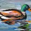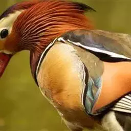 雌鸟头和项棕褐色,头顶和颈较暗,颏部有一三角形白色小斑,喉部亦杂有白色。上体暗褐色,腰和尾上覆羽黑褐色,背和肩具棕褐色羽缘。两翅同雄鸟,亦具宽阔的白色翼镜。上胸棕褐色,下胸灰白而杂以不明显的棕斑。上腹灰白色,下腹褐色,羽缘白色。两胁褐色,具棕色端斑,尾下覆羽白色。