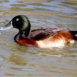 白眼潜鸭(学名:Aythya nyroca)属中型潜鸭,个体比红头潜鸭小,和凤头潜鸭差不多。体长33-43厘米,体重0.5千克以上不到1千克。雄鸟头、颈、胸暗栗色,颈基部有一不明显的黑褐色领环;眼白色,上体暗褐色,上腹和尾下覆羽白色,翼镜和翼下覆羽亦为白色,两胁红褐色,肛区两侧黑色。雌鸟与雄鸟基本相似,但色较暗些。在水中时腹部白色虽不可见,但头、颈、胸和两胁的暗栗色,以及肛区两侧的黑色和尾下白色形成明显对照。飞翔时腹中部和翅上翅下白斑与暗色体羽亦形成强烈对比,反差强烈,杂食性,主要以水生植物和鱼虾贝壳类为食。栖居于沼泽及淡水湖泊。冬季也活动于河口及沿海泻湖。怯生谨慎,成对或成小群。繁殖在德国、匈牙利、波兰、西班牙、希腊、摩洛哥等欧洲中部、南部和地中海沿岸国家,往东到土耳其、克什米尔、伊朗、外高加索,一直到西伯利亚西南部;越冬在缅甸、印度北部和中部、孟加拉国、伊拉克、伊朗南部、埃及和地中海沿岸。