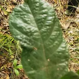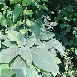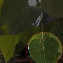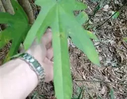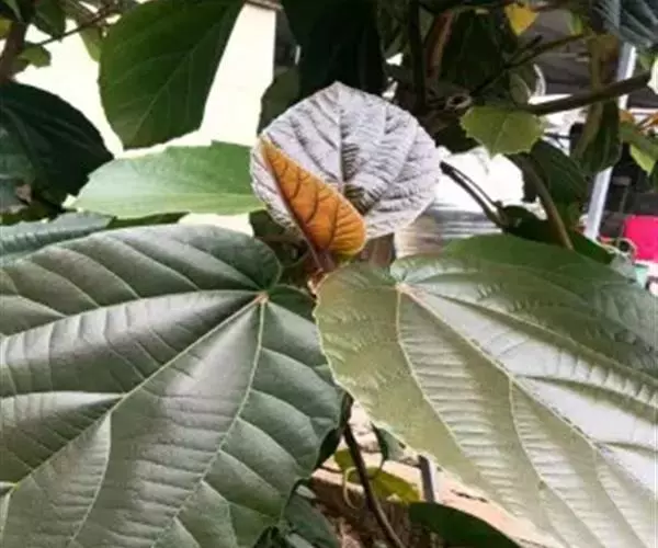 乔木或小乔木,高4-10米,胸径10-15厘米,榕冠广展。树皮灰褐色,粗糙,幼 枝被柔毛,直径10-15毫米,红褐色,中空。叶互生,厚纸质,广卵状心形,长15-55 厘米,宽15-27厘米,先端钝,具短尖,基部心形,稀圆形,边缘具整齐细锯齿,表面 无毛,仅于中脉及侧脉有微柔毛,背面多被开展短柔毛,基生侧脉5-7条,侧脉每边3- 4条,表面微下凹或平坦,背面突起;叶柄长5-8厘米,粗壮;托叶三角状卵形,长-1.5 2厘米,紫红色,外面被短柔毛。