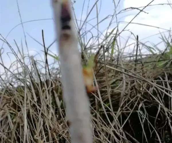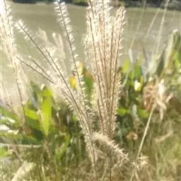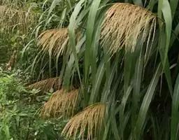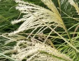 茎极狭,长约1m,宽约2cm,下垂,边缘具细齿,呈灰绿色,被短毛。圆锥花序大,雌花穗银白色,具光泽,小穗轴节处密生绢丝状毛,小穗由2-3花组成。雄穗为宽塔形,疏弱。花期9-10月。