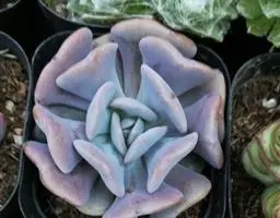 月影之宵 喜欢阳光充足、干燥通风的环境,比较耐寒、耐干旱、耐高温,温度在35℃以上会休眠,冬季环境温度以不低于5℃为宜。在秋冬季节,叶片颜色会渐渐变换,温差大的环境更为明显,此时状态最为迷人。需要注意的是,月影系品种一般叶片较多,排列紧凑,