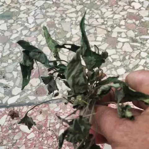 危害症状:又叫烂根病,地下茎形成褐色凹陷纵裂的病斑。地上秧苗节间缩短、矮化,叶片发黄,发病严重的地下茎全部变黑腐烂。患病块根表面粗糙、布满大小不等的黑褐色病斑,中后期龟裂,皮下组织变黑。