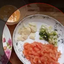 2. 姜蒜切片,干辣椒剪成小段备用;