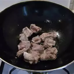 1、将鸡腿或一整只鸡洗净改成丁放入碗中用盐、料酒码味,微炸成型。