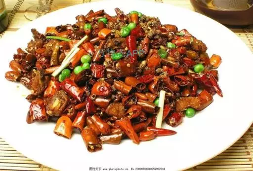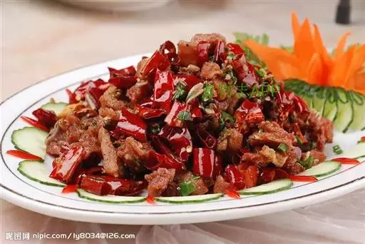 辣子鸡是中国四川、重庆、贵州、湖南、江西等地的一道特色名菜,属于川菜、湘菜、黔菜等,该菜品一般以整鸡为主料,加上葱、干辣椒、花椒、盐、胡椒、味精等多种材料精制而成,虽然是同一道菜,但是各地制作也各有特色。