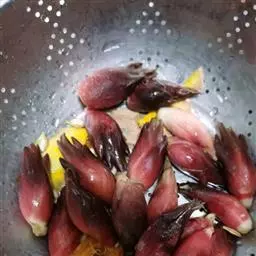 1.鸡腿切块,加两勺料酒,一勺生抽,几片姜拌匀腌制半小时,腌好的鸡肉下到六成热的油锅里中小火炸至鸡肉水分煸干,变得金黄酥醋后捞出控油备用