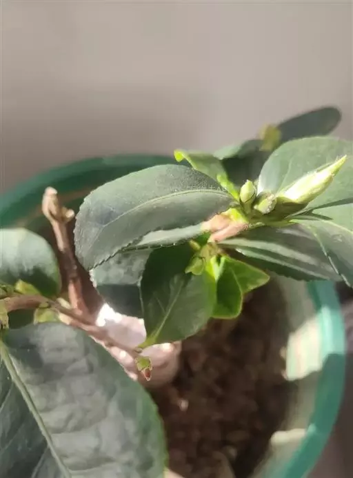 因山茶不耐寒,延缓花期不太常用。一般用选择品种、温度控制、激素处理等办法来控制花期。欲使山茶”十一”开花,可在7月中旬或8月初用毛笔蘸0.1%的赤霉索,点涂于花蕾上,每3天涂1次,肥水正常管理。9月看花蕾生长情况决定是否涂花蕾,若估计”十一”开花不保险,可增加涂蕾次数,增加肥水量,促花蕾迅速生长,使”十一”见花。