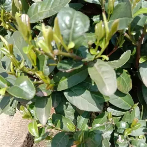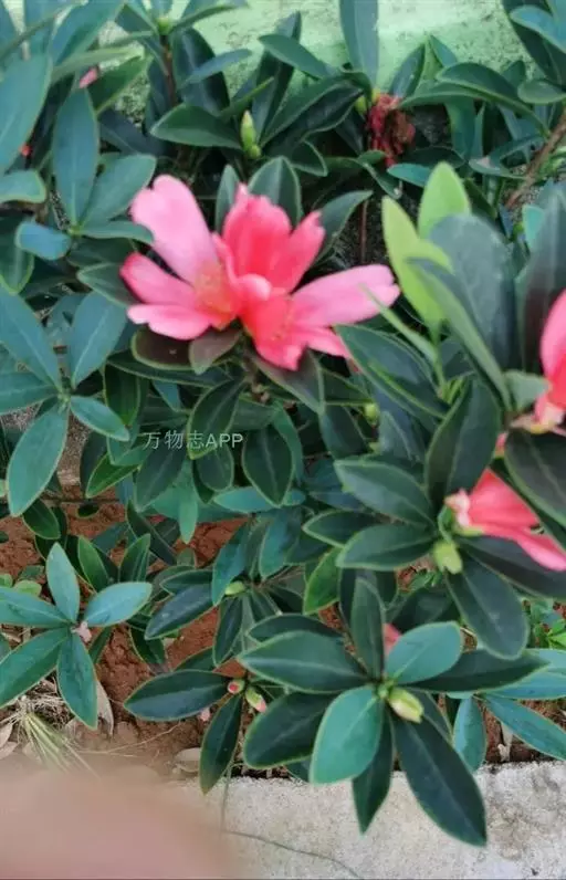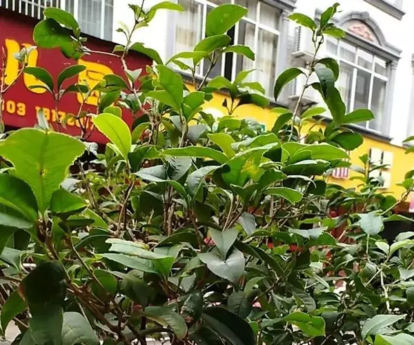 美人茶:山茶的栽培品种。叶长椭圆形,有光泽,叶缘有钝锯齿,较稀。花色大红或水红,喇叭形,较繁多花期1-4月。