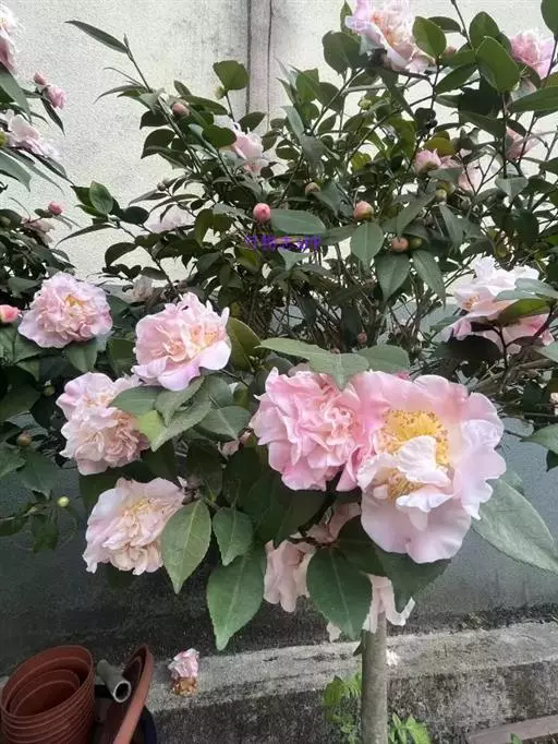 心愿:山茶的栽培品种。新品种。花淡粉红色,重瓣,中型花。中花花期。