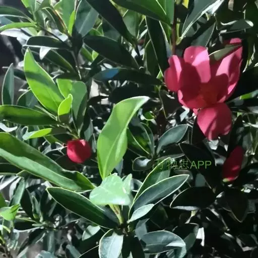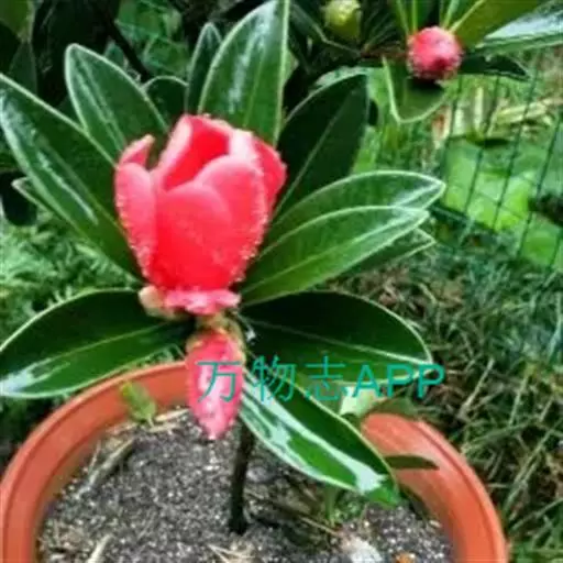 红牡丹:山茶的栽培品种。叶椭圆形,先端尖,略下乖,叶缘具细锐锯齿。花粉红色或红色。花期3-4月。