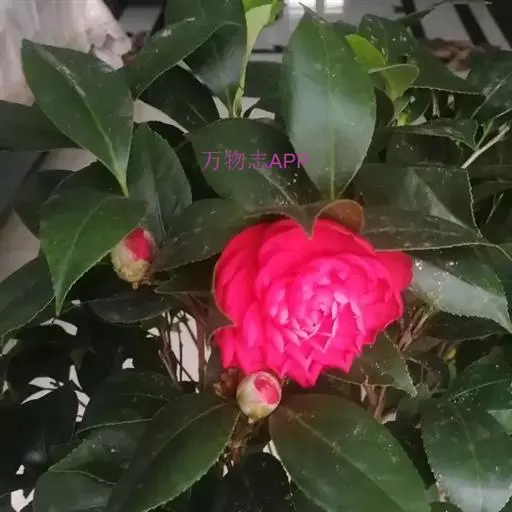 凯夫人:山茶的变种。新叶淡红色,带红斑或云斑。中至大型花,花瓣带小锯齿。中花花期。