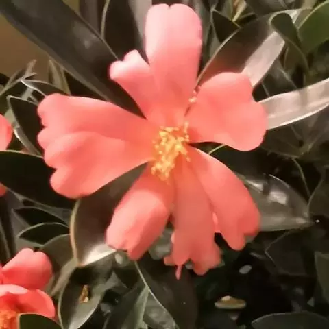 东方亮:山茶的枝培品种。叶深绿色,有光亮,叶缘具钝密锯齿。花韧开肉红色,渐肉白色。花期1 -3月。