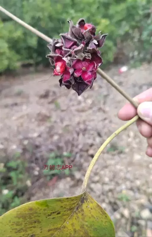 花顶生,红色,无柄;苞片及萼片约10片,组成长约2.5-3厘米的杯状苞被,半圆形至圆形,长4-20毫米,外面有绢毛,脱落;花瓣6-7片,外侧2片近圆形,几离生,长2厘米,外面有毛,内侧5片基部连生约8毫米,倒卵圆形,长3-4.5厘米,无毛;雄蕊3轮,长约2.5-3厘米,外轮花丝基部连生,花丝管长1.5厘米,无毛;内轮雄蕊离生,稍短,子房无毛,花柱长2.5厘米,先端3裂。