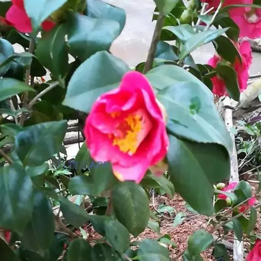 松子:山茶的栽培品种。嫩枝紫红色。叶椭圆形,探绿色,叶尾突尖。花大红色,略暗些。花期3-4月或12月至翌年3月。