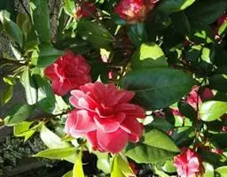 ③人工整形:山茶花还可以通过人工整形,供观赏应用,如:将山茶通过修剪整形,把树冠整成球形、伞形、圆柱形树冠,山茶墙树式,平卧铺地式,使山茶匍匐于地生长,铺地而生 。墙树在西欧北美应用较多,即将山茶花植于向阳温暖的墙面之外,附以攀登墙架,使山茶枝干顺墙面而升,继而覆盖墙面,颇为壮观。