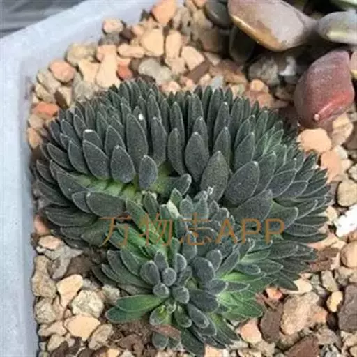 莲座丛直径2.5-3.5厘米,疏松。基生叶倒披针形至匙形,长1.2-2.5厘米,宽4-5毫米,先端急尖或渐尖,密被短的白柔毛;花茎高5-10厘米,被毛,密生叶;叶倒披针形,被毛。