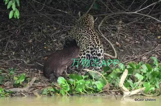 休息中的美洲豹 它们生活于多水之地,且跟虎一样,是喜欢游泳的猫科动物。美洲豹爱独行,是蛰伏突袭的掠食者,在选择猎物方面,它们完全是投机取巧的。它们是顶级掠食者和基石物种(keystone species),在平衡生态系统和调节猎物数量方面占着举足轻重的地位 。
