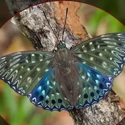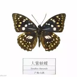 大紫蛱蝶为大型蝶种,翅展约86~110mm。翅紫黑色,有白色斑点点缀其中,雄蝶的翅具强烈紫色虹彩,…