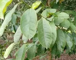 叶薄革质,披针状卵形或披针状长椭圆形,长10-20(25)厘米,宽4.5-9厘米,先端长渐尖或近尾状,基部阔楔形或楔形,下面稍被微柔毛;叶柄长2-4厘米,托叶痕长达叶柄中部以上。
