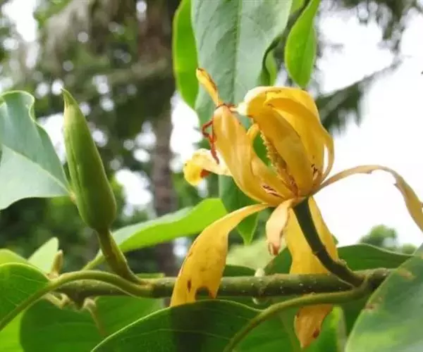 黄桷兰,又名黄兰(植物名实图考) 黄玉兰(广东),黄缅桂(云南) 图版40:1-7。是木兰科、木兰属的常绿乔木植物。黄桷兰枝干挺拔, 高达20米,幼枝、叶互生,薄革质,叶色苍翠,花单生于叶腋,橙黄色,花朵素雅,极香,香味清幽甜润,含苞欲放时香味最浓郁;花期长,温度适宜可花开不绝。有独特的生长习性。分布在云南南部和西南部,在长江以南各省区均有栽培。喜生长于温暖地方。花和叶是芳香油原料,可提取浸膏;木材优良,可供造船。分布于印度、尼泊尔、缅甸、越南。中国西藏东南部、云南、福建、台湾、广东、海南、广西有栽培;长江流域各地盆栽,在温室越冬。