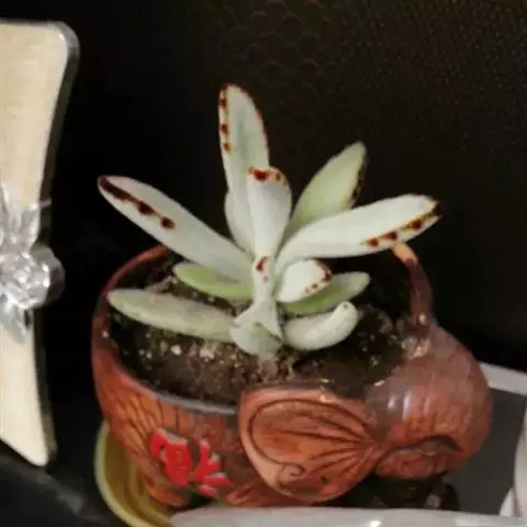 黑兔耳是景天科伽蓝菜属的 多肉植物,别名巧克力兔耳,是月兔耳的栽培品种。卵形叶被绒毛,形如兔子的耳朵,叶缘有深褐色斑点,叶色偏灰,易分枝。晚秋至早春生长旺盛。喜阳光充足的环境,夏季要适当遮荫,不能过于荫蔽。