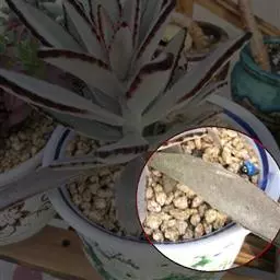 盆土可以用煤渣混合泥炭、少量珍珠岩,比例大概6:3:1,土表铺设了河沙。